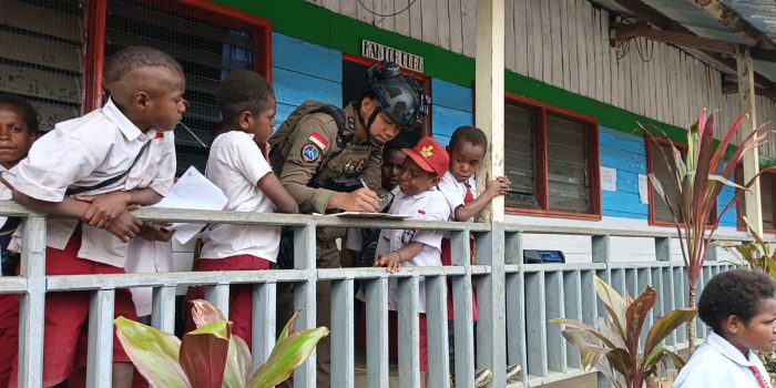 Bangun Generasi Muda Papua, Satgas Damai Cartenz Berbagi Buku dan Mengajar di Intan Jaya