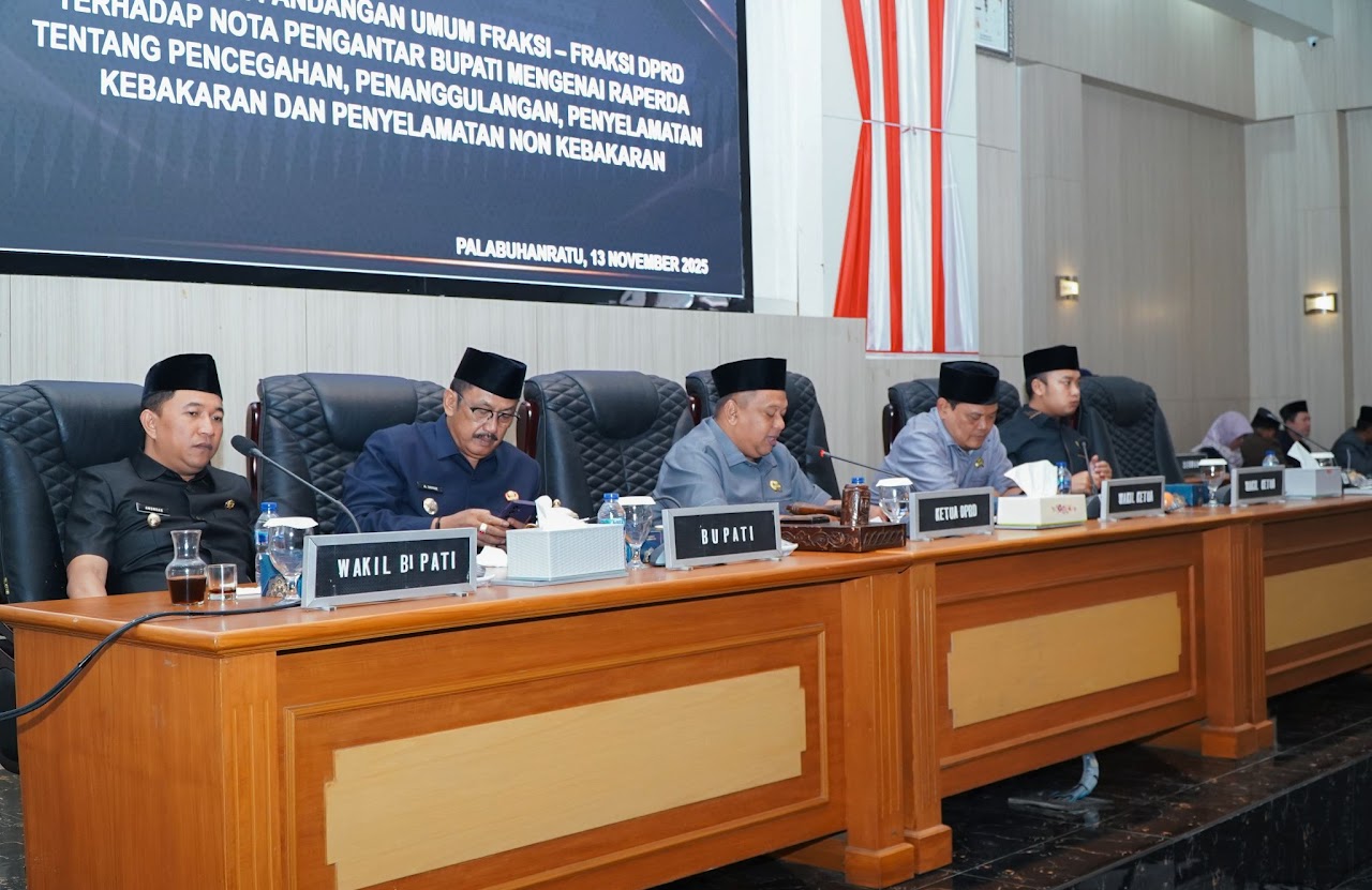 SUKABUMI, Cybernewsnasional.com Dewan Perwakilan Rakyat Daerah (DPRD) Kabupaten Sukabumi kembali menggelar Rapat Paripurna ke-41 Tahun Sidang 2025, bertempat di Ruang Rapat Utama Gedung DPRD Kabupaten Sukabumi, pada Kamis (13/11/2025). Rapat Paripurna kali ini mengagendakan Penyampaian Pandangan Umum Fraksi-Fraksi DPRD terhadap Nota Pengantar Bupati Sukabumi mengenai Rancangan Peraturan Daerah (Raperda) tentang Pencegahan, Penanggulangan, Penyelamatan Kebakaran dan Penyelamatan Non Kebakaran.