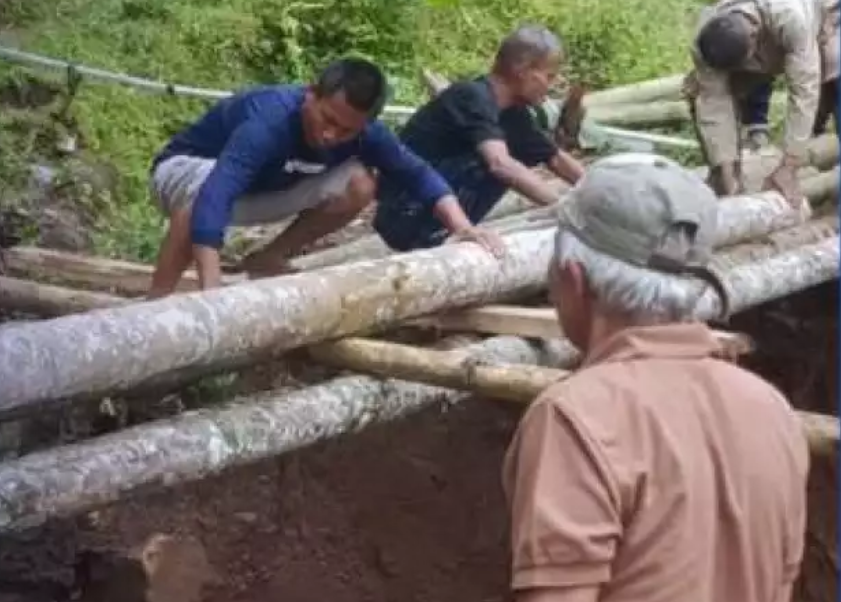 “Alhamdulillah, kami bersama masyarakat berinisiatif membangun jembatan darurat dari batang pohon kelapa dengan panjang sekitar 6 meter, lebar 4 meter, dan tinggi 3,5 meter,” ujar Edi Mulyadi.