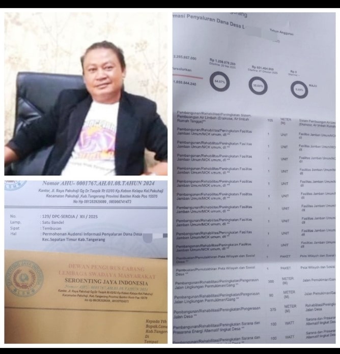 TANGERANG, Cybernewsnasional.com – Dewan Pimpinan Cabang (DPC) LSM Serunting Jaya Indonesia (Seroja) Kabupaten Tangerang melayangkan surat permohonan informasi kepada empat Pemerintah Desa di wilayah Kecamatan Sepatan Timur, Selasa (2/12/2025).