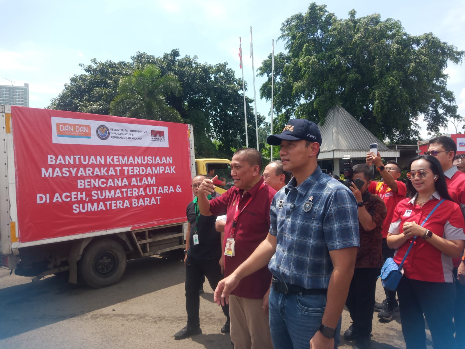 Menteri Koordinator Bidang Infrastruktur dan Pembangunan Kewilayahan, Agus Harimurti Yudhoyono (AHY), melepas keberangkatan 19 truk bantuan yang disiapkan melalui kerja sama pemerintah dengan Asosiasi Pengusaha Ritel Indonesia (Aprindo). Bantuan tersebut berisi kebutuhan logistik, sembako, dan berbagai perlengkapan harian bagi keluarga, termasuk perempuan dan anak-anak.