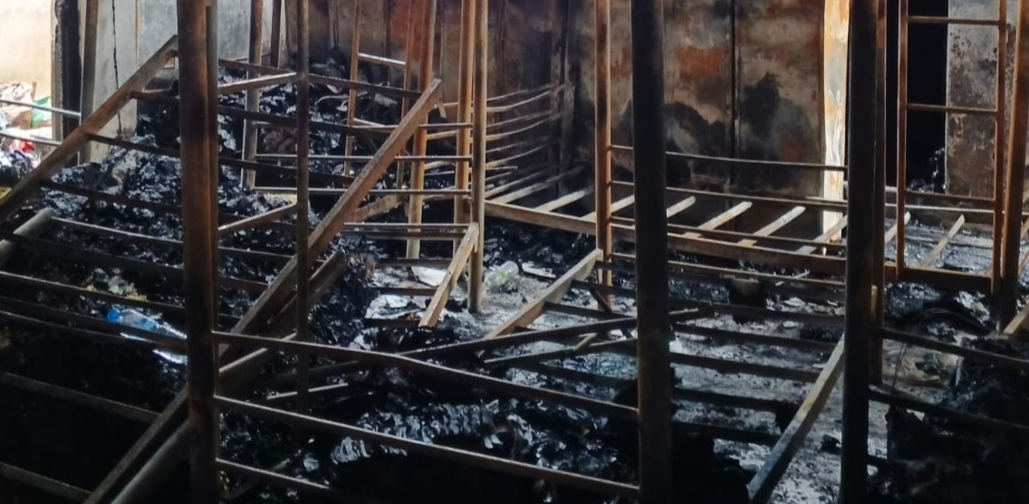 Berdasarkan pantauan di lokasi, kondisi asrama tampak hangus dengan sisa rangka tempat tidur dan perabotan yang terbakar. Abu dan puing-puing bangunan terlihat menumpuk di dalam ruangan, menandakan hebatnya kobaran api saat peristiwa terjadi.