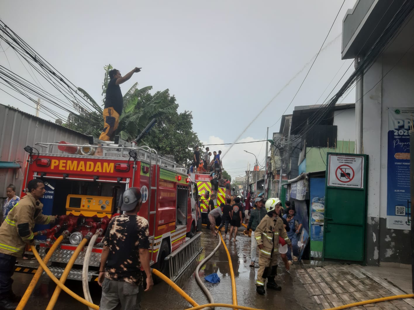 Sejumlah unit mobil pemadam kebakaran dikerahkan ke lokasi untuk menjinakkan api. Proses pemadaman berlangsung cukup lama karena kondisi bangunan yang padat serta akses jalan yang terbatas.