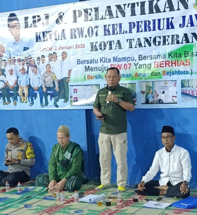 Dalam sambutannya, Lurah Periuk Jaya Muhdi Komarudin menyampaikan apresiasi atas terselenggaranya pelantikan yang berjalan tertib, aman, dan penuh kekhidmatan. Ia menegaskan bahwa periode kepengurusan RW 07 masih menunggu penetapan resmi berupa Surat Keputusan (SK) yang saat ini sedang dalam proses di Pemerintah Kota Tangerang.