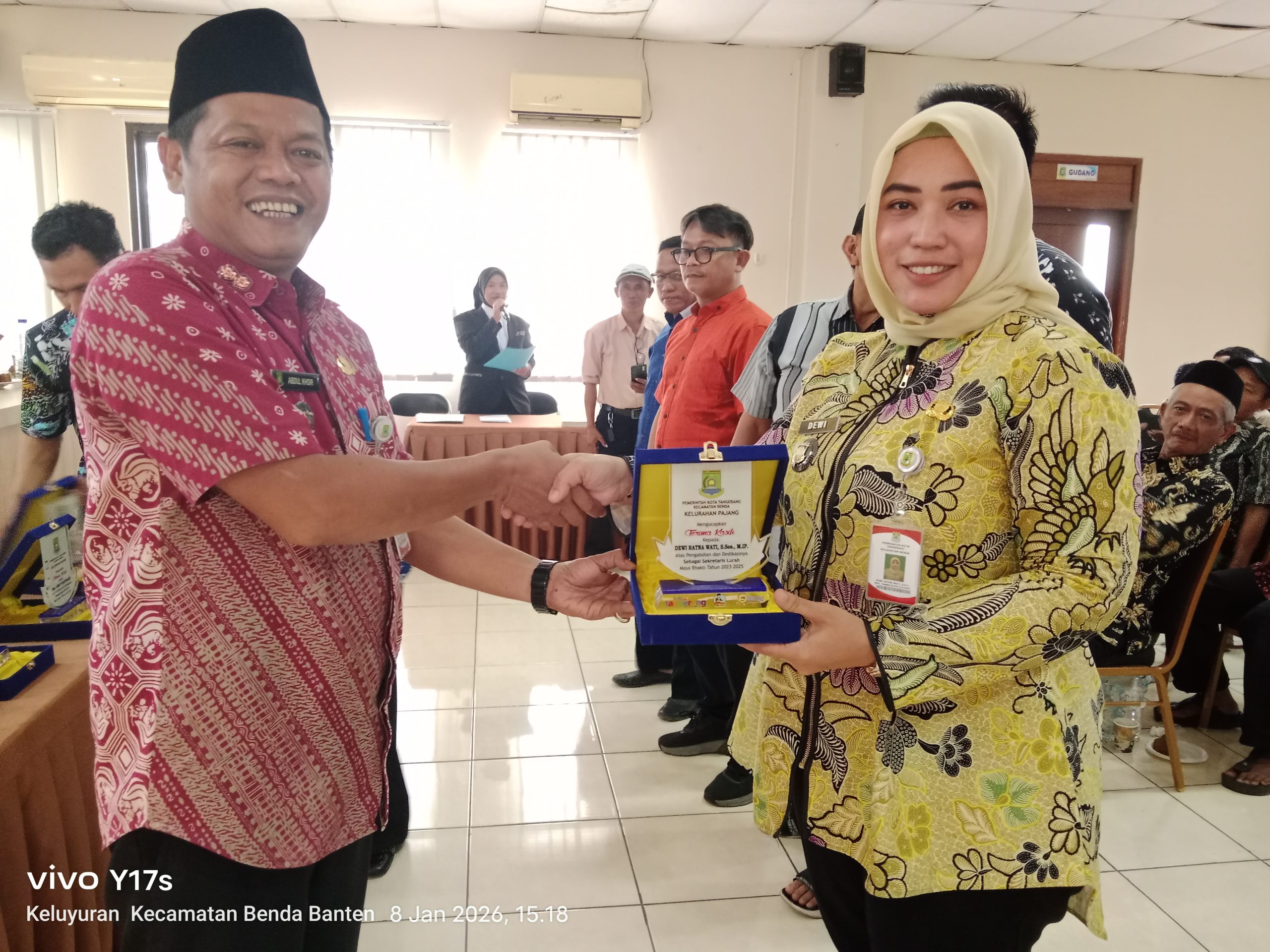 Lurah Pajang Abdul Khoir serahkan Cindera mata kepada Sekel lama Dewi Ratnawati