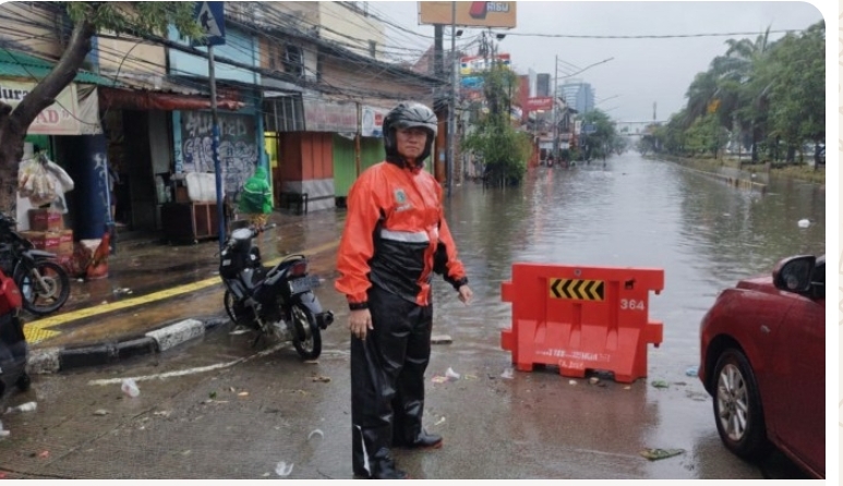 JAKARTA.Cybernewsnasional.com-Pengendara tidak perlu khawatir terhadap situasi arus lalu lintas pada sejumlah ruas jalan yang tergenang di Jakarta Utara, Minggu (18/1/2026). Dinas Perhubungan Kota Administrasi Jakarta Utara memastikan petugas telah disebar di titik-titik pengendalian untuk membantu kelancaran lalu lintas.