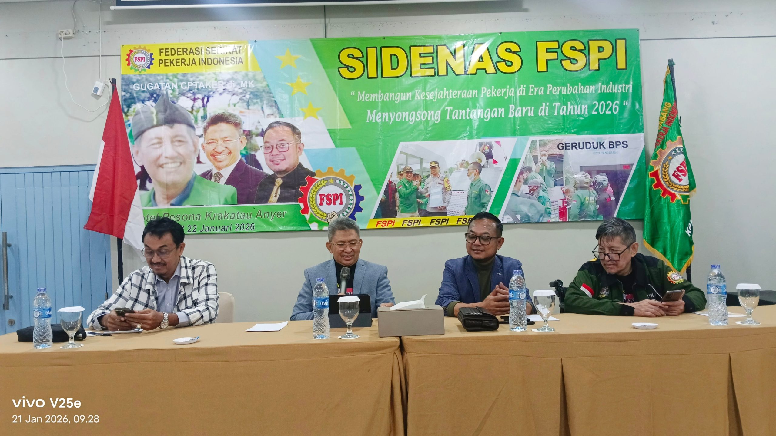ANYER, Cybernewsnasional.com – Federasi Serikat Pekerja Indonesia (FSPI) secara tegas menyuarakan desakan kepada pemerintah dan DPR RI agar segera mengesahkan Undang-Undang Ketenagakerjaan yang baru. Desakan tersebut mengemuka dalam Sidang Dewan Nasional (SIDENAS) FSPI yang berlangsung selama tiga hari, 20–22 Januari 2026, di Hotel Pesona Krakatau, Anyer, Banten.