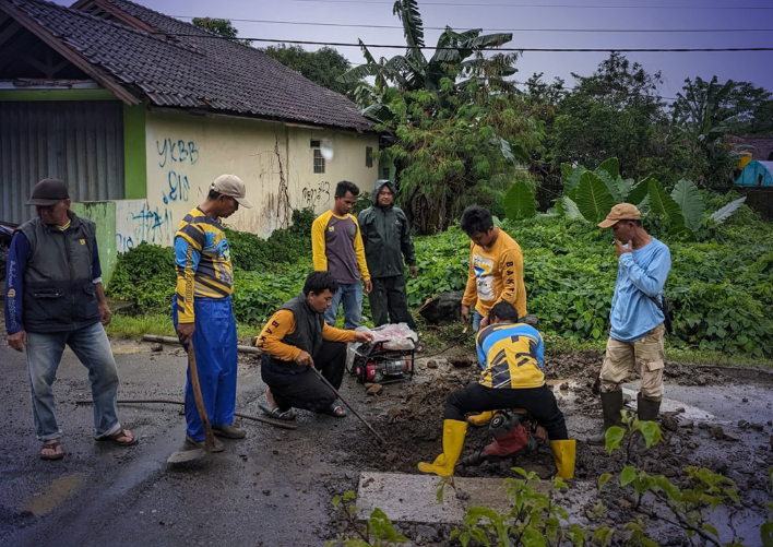 “Jalan ini mengalami amblas sehingga berpotensi menimbulkan kecelakaan. Oleh karena itu, kami segera melakukan pemasangan plat beton sebagai penanganan sementara agar jalan tetap bisa dilalui dengan aman,” ujar Yudi.