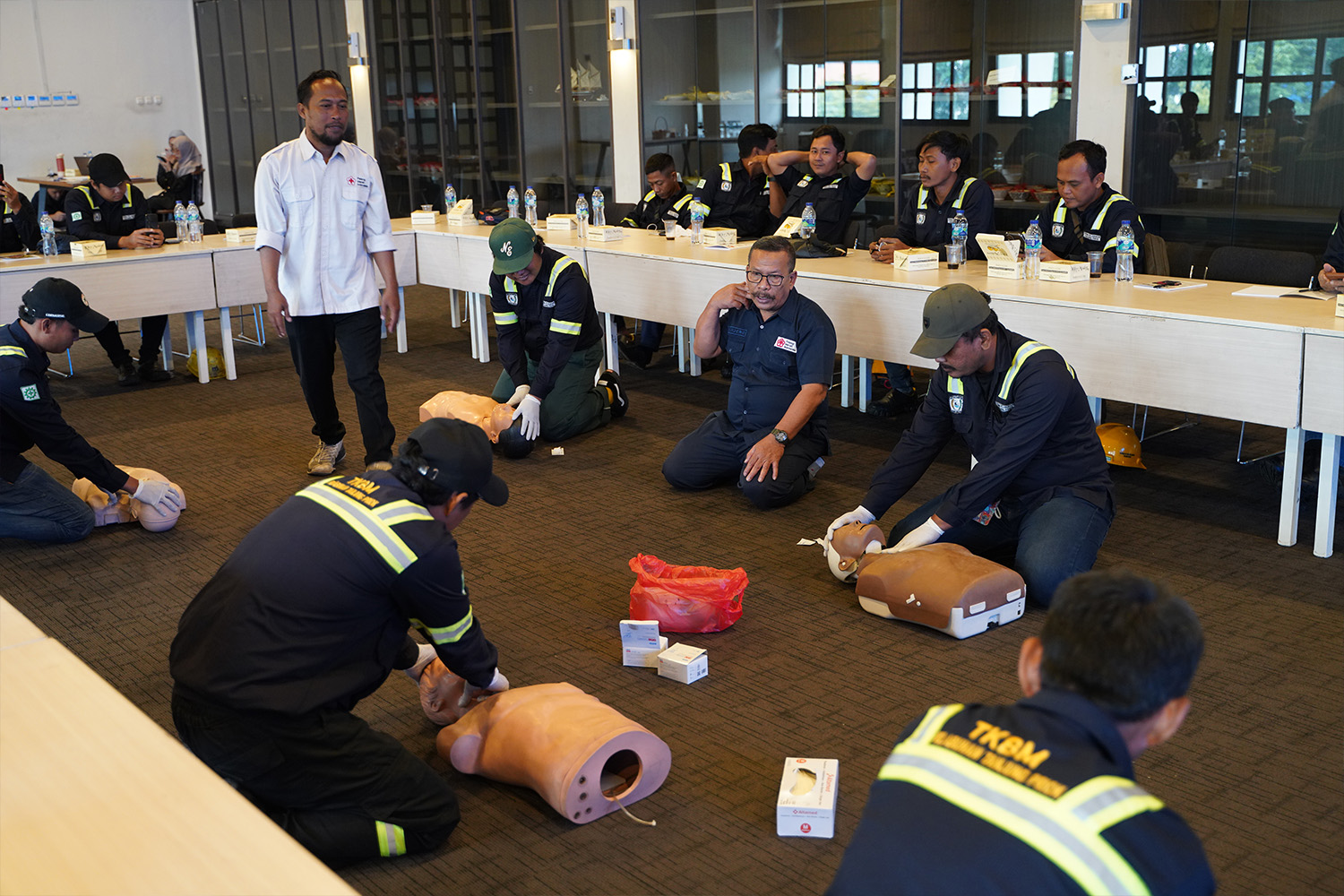 Pelatihan yang melibatkan instruktur profesional dari Palang Merah Indonesia (PMI) Jakarta Utara ini diikuti oleh 27 personel TKBM yang beroperasi di wilayah Pelabuhan Tanjung Priok dan dilaksanakan di Museum Maritim Indonesia.