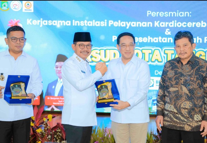Peresmian kerja sama Instalasi Pelayanan Kardioserebrovaskular Terpadu (IPKT) antara RSUD Kota Tangerang dan BPJS Kesehatan dilaksanakan pada Sabtu (14/2/2026). Peresmian dilakukan langsung oleh Wali Kota Tangerang Sachrudin bersama Wakil Menteri Kesehatan RI Benjamin Paulus Octavianus, Gubernur Banten Andra Soni, serta Direktur Utama BPJS Kesehatan Ali Ghufron Mukti.