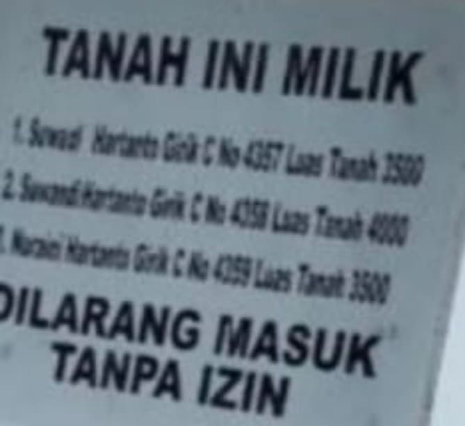 “Kami mengacu pada nama-nama yang pernah memasang plang kepemilikan di lokasi, yakni Girik No. 4357 Persil 166a seluas 3.500 meter persegi atas nama Mardi Hartanto; Girik No. 4358 Persil 166a seluas 3.750 meter persegi atas nama Suwadi Hartanto; serta Girik No. 4359 seluas 4.000 meter persegi atas nama Nuraini Hartanto. Namun setelah kami meminta keterangan dari pihak kelurahan, girik tersebut tidak tercatat. Ini yang menjadi dasar keberatan kami,” ujarnya.