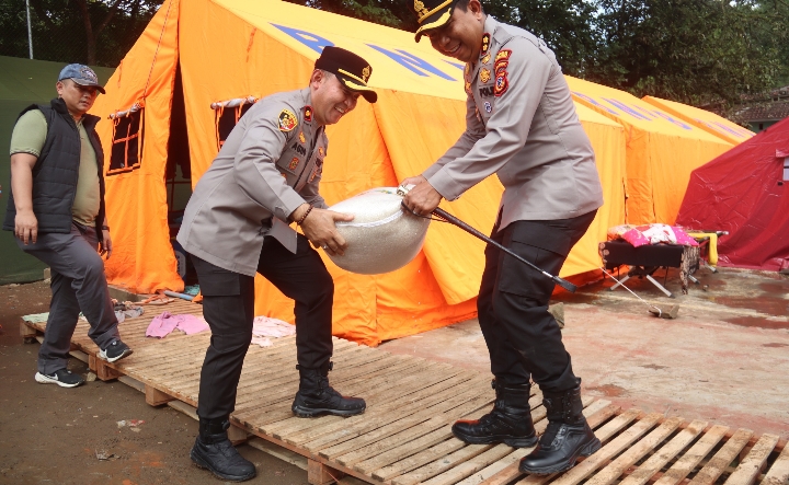 Dalam kegiatan tersebut, Kapolres didampingi Wakapolres Sukabumi Kompol Agus Susanto, S.H., M.M. serta para Pejabat Utama Polres Sukabumi untuk memastikan kondisi wilayah terdampak sekaligus memberikan bantuan kepada warga yang mengungsi.